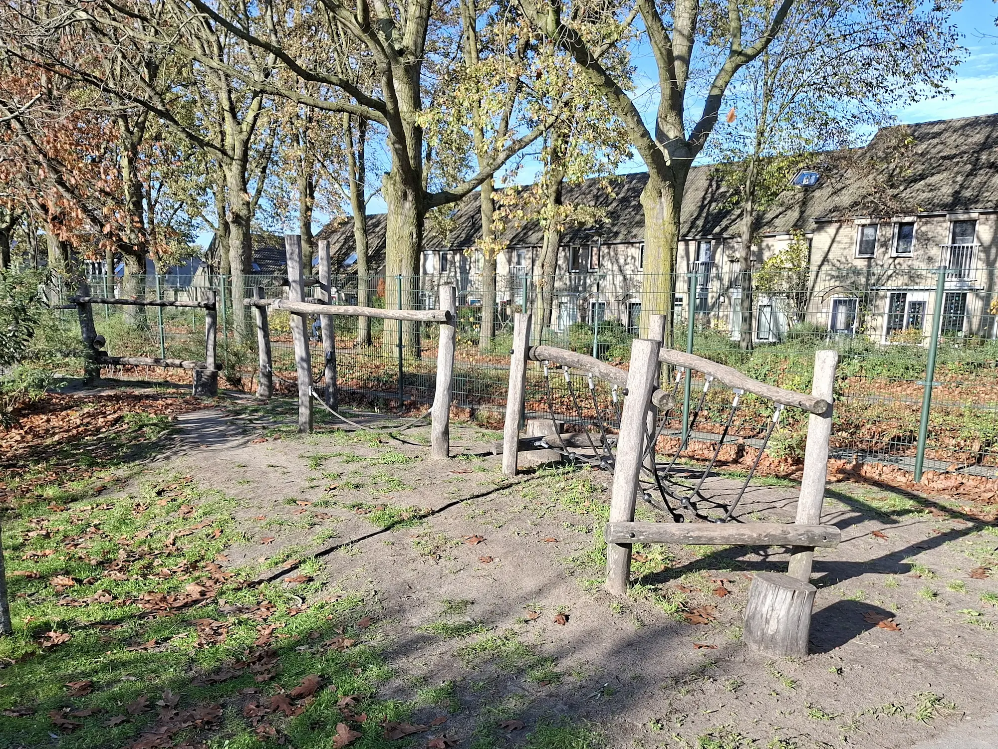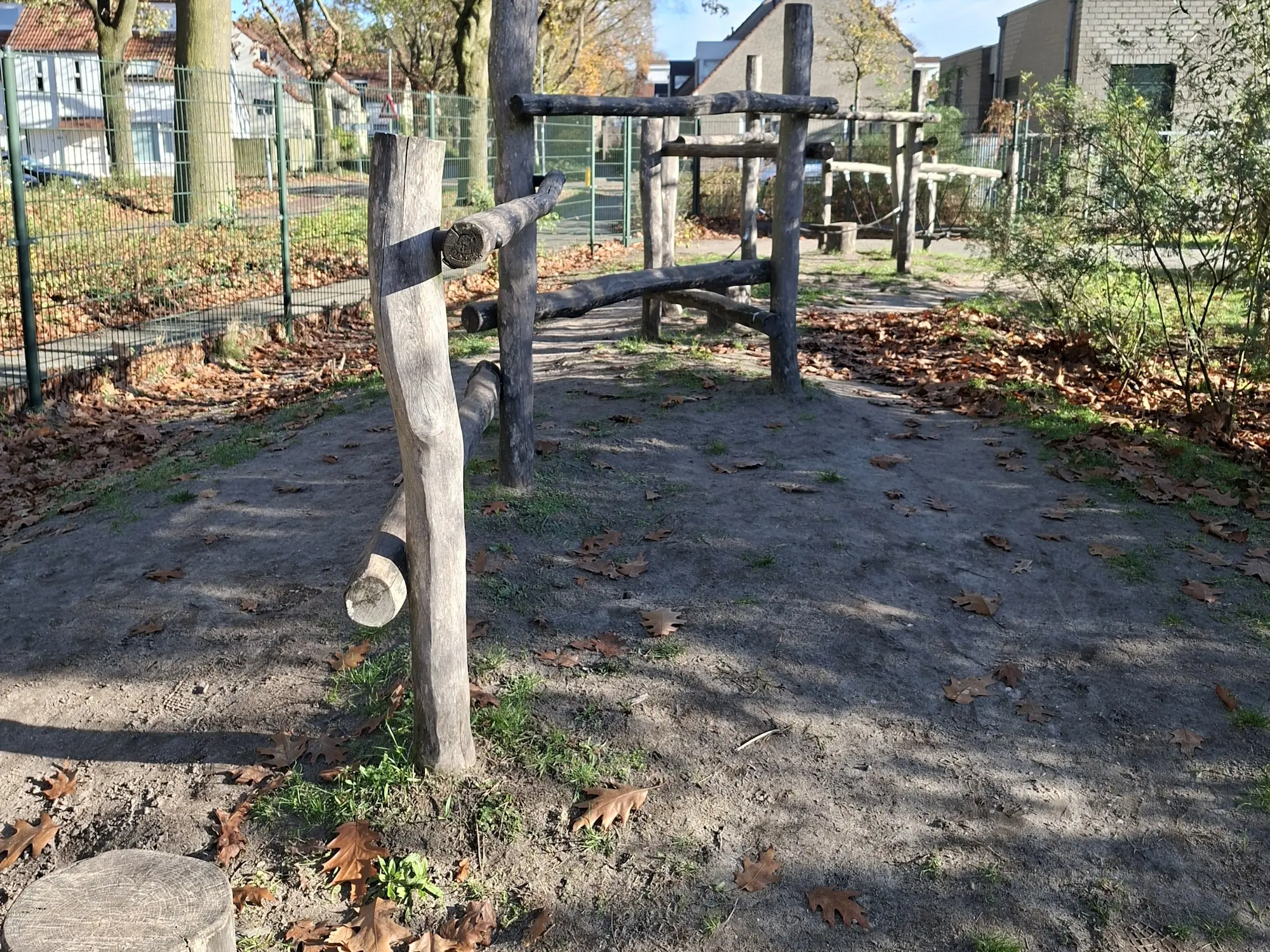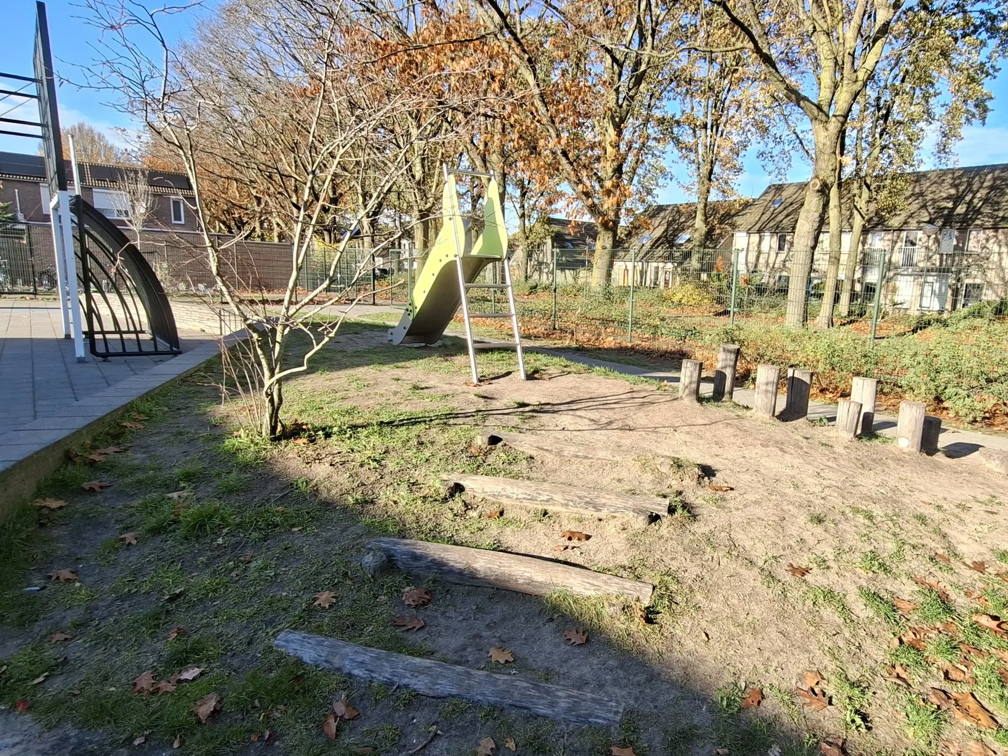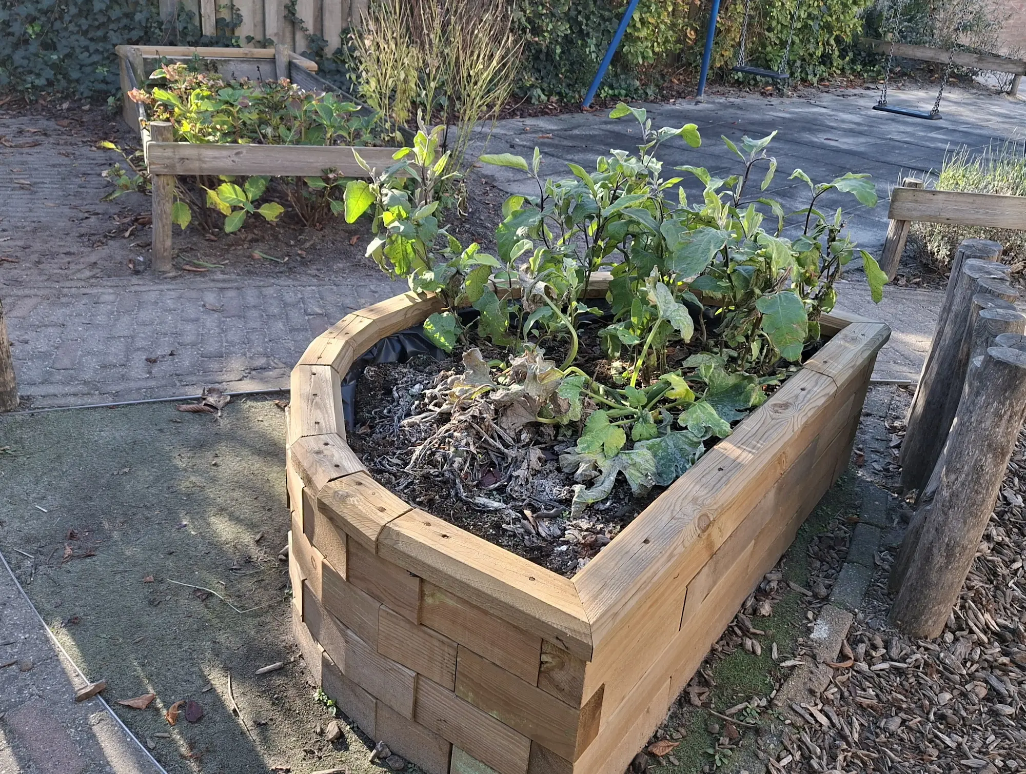 Het plein biedt volop uitdaging en plezier: balanceerstammen, stappaaltjes, een glijbaan en een duikelrek zorgen voor beweging en avontuur. In de moestuinbakken en het geveltuintje ontdekken kinderen hoe planten groeien en hoe leuk het is om samen iets te verzorgen.