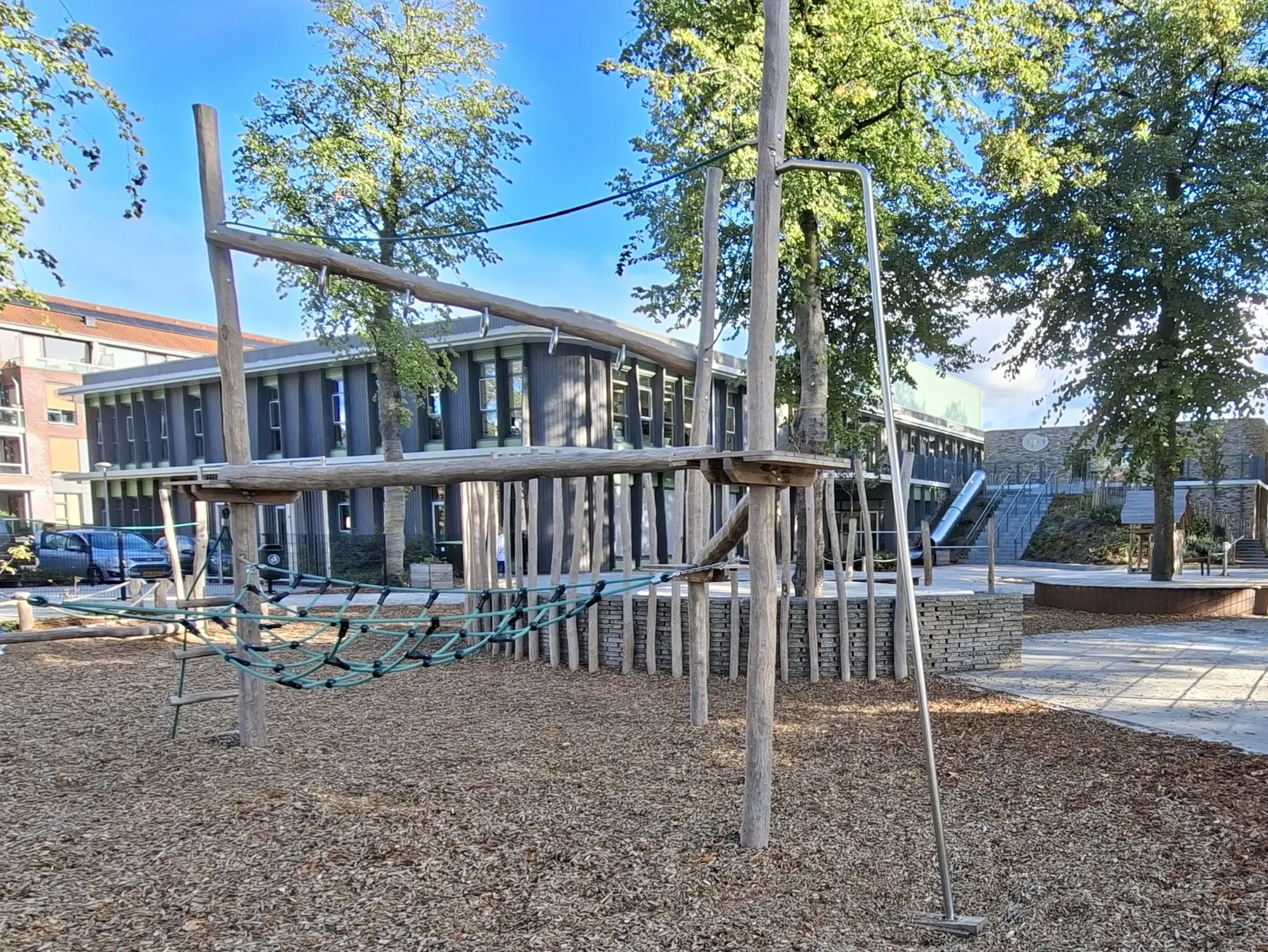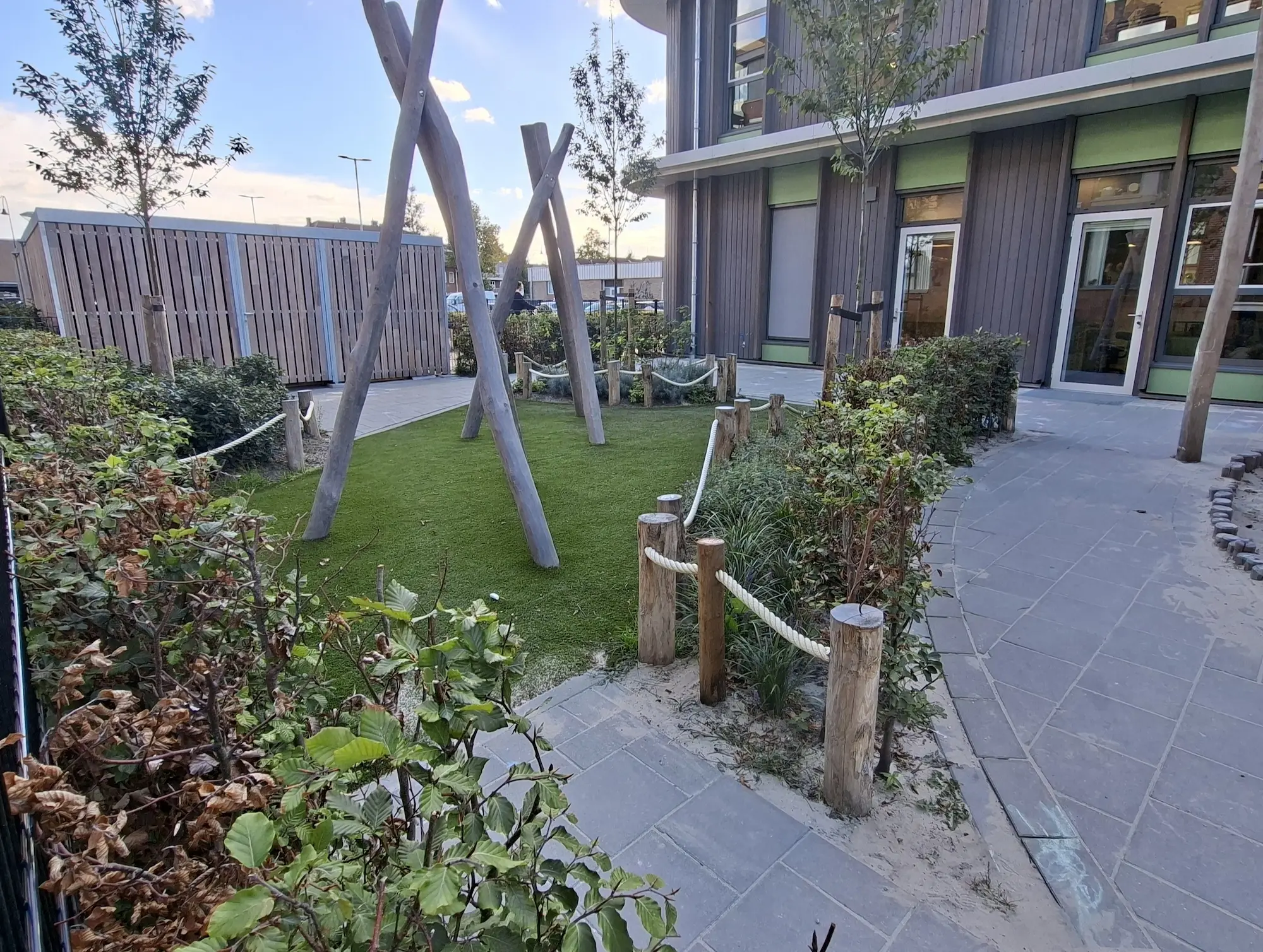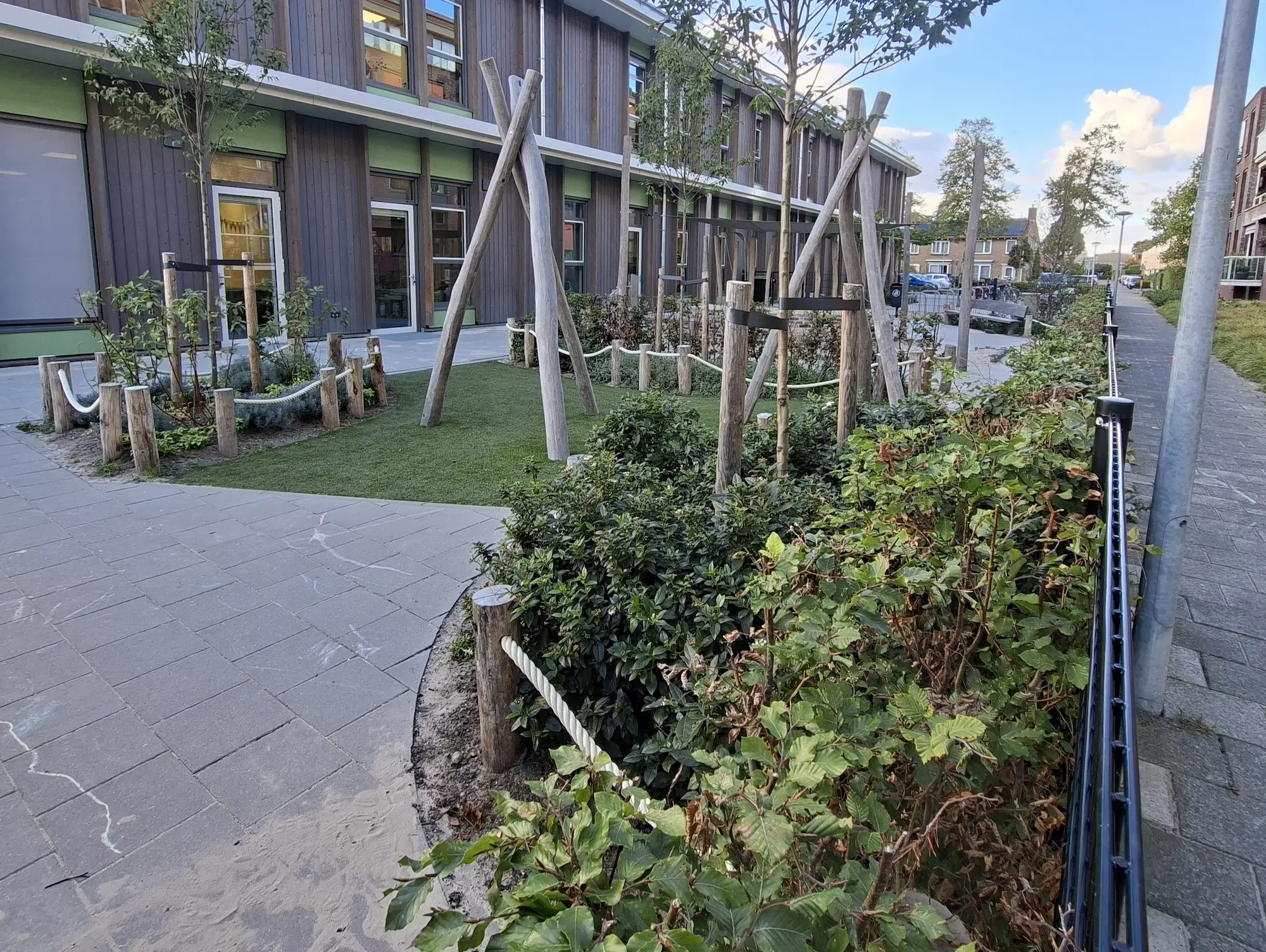 Kindcentrum Florent in Uden heeft een prachtig groen schoolplein waar spel, beweging en natuur samenkomen. Het plein zit vol verrassende elementen die kinderen uitdagen om te ontdekken, te klimmen en te genieten.