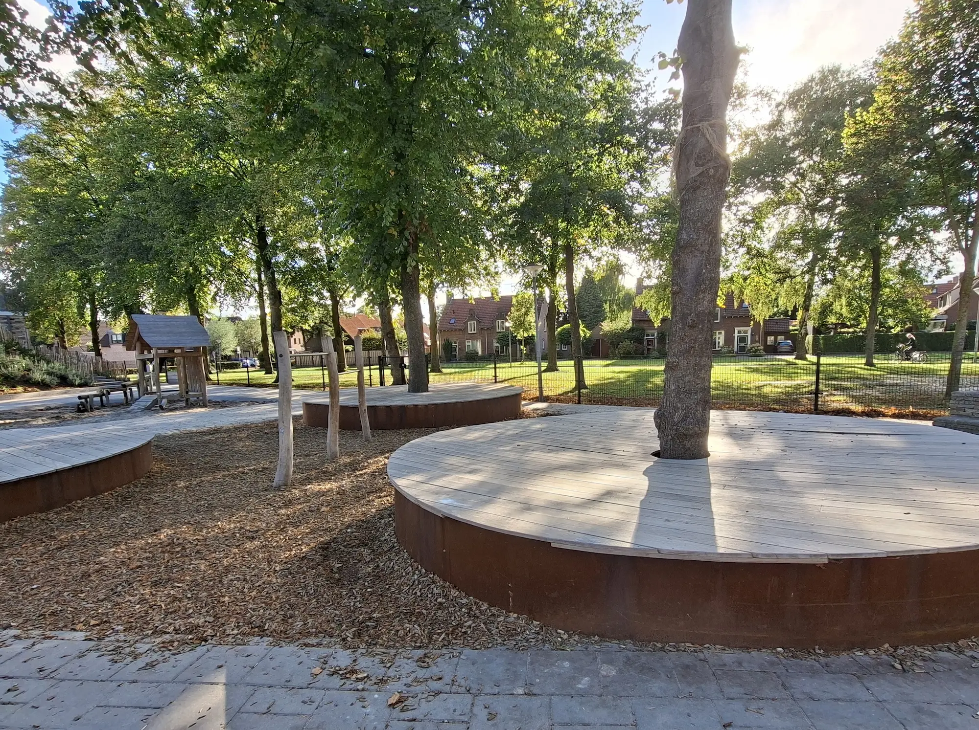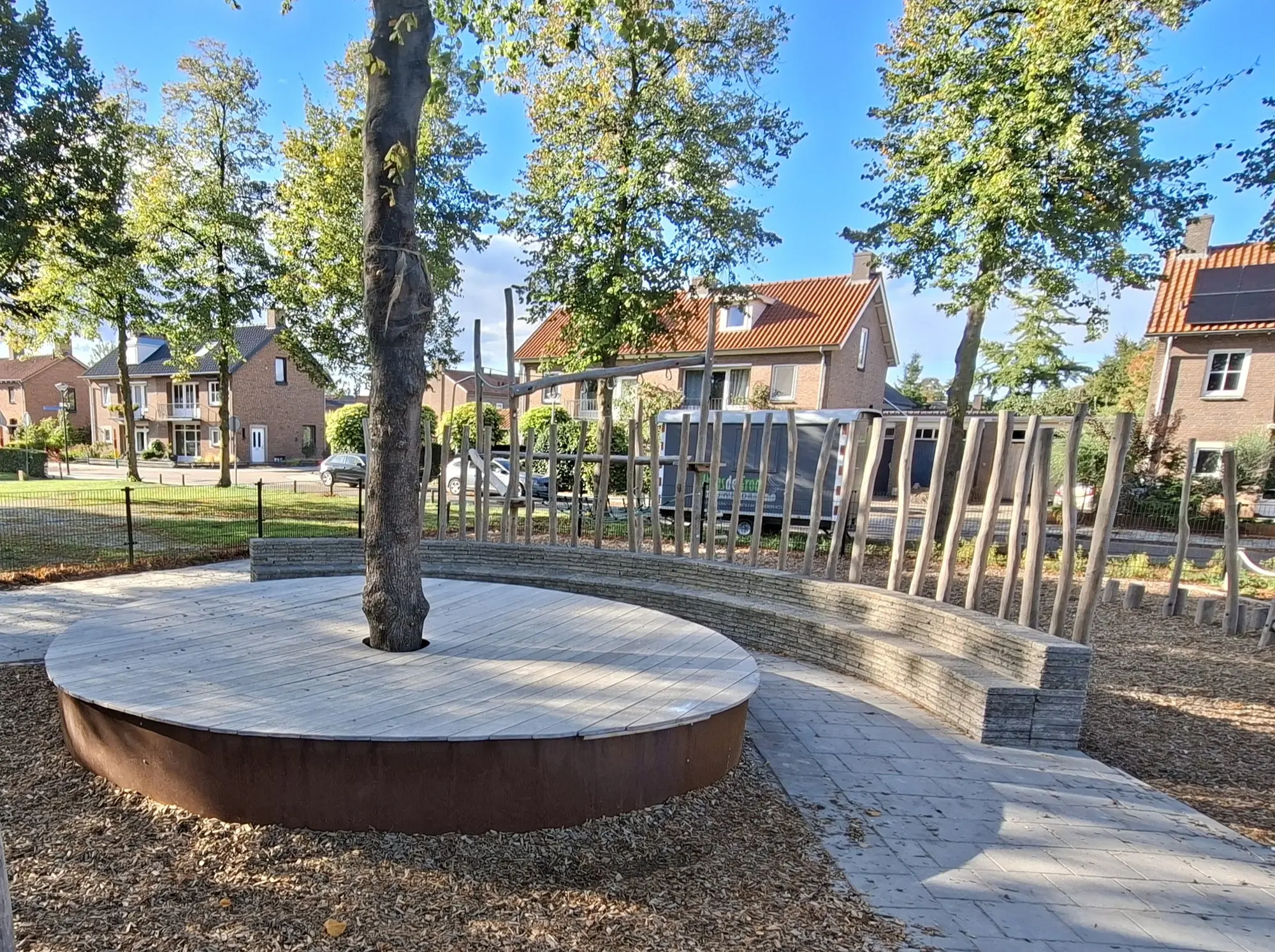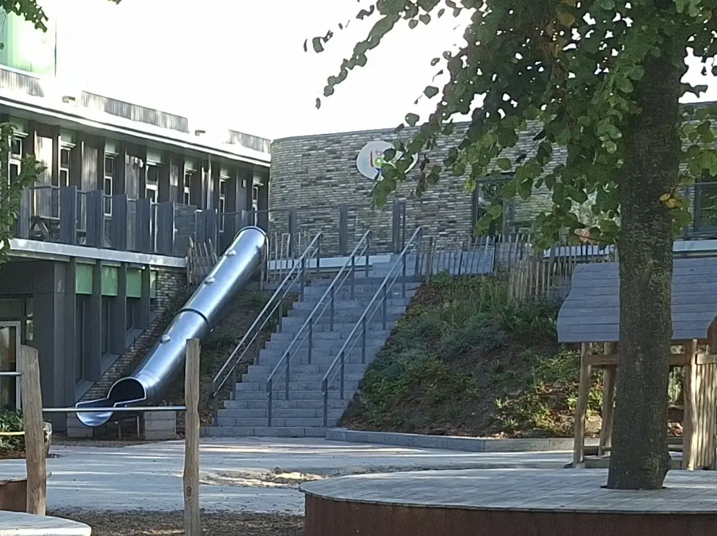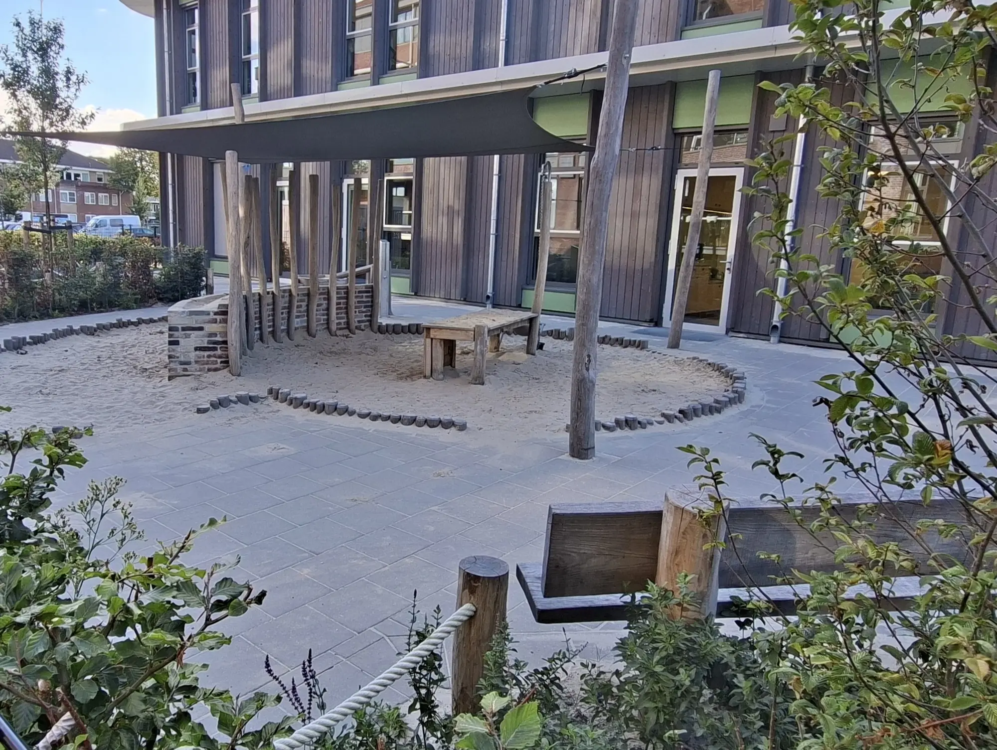 Kindcentrum Florent in Uden heeft een prachtig groen schoolplein waar spel, beweging en natuur samenkomen. Het plein zit vol verrassende elementen die kinderen uitdagen om te ontdekken, te klimmen en te genieten.