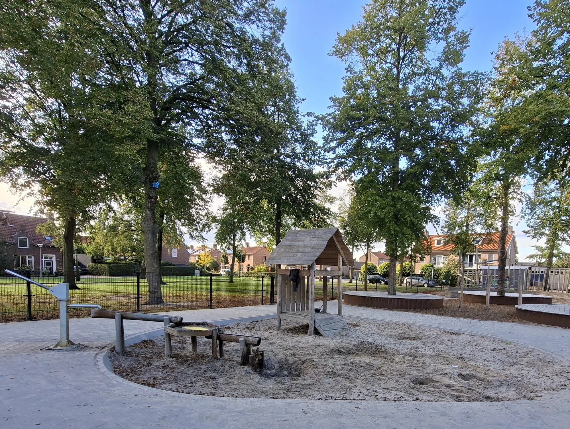 Daarnaast is er volop ruimte om te spelen: een waterspeelplaats, zandtafel, duikelrek, klimtoestel en een voetbalveldje zorgen voor eindeloos plezier en beweging. Struiken en planten omzomen de speeltoestellen en maken van het plein een natuurlijke, veilige en avontuurlijke omgeving.