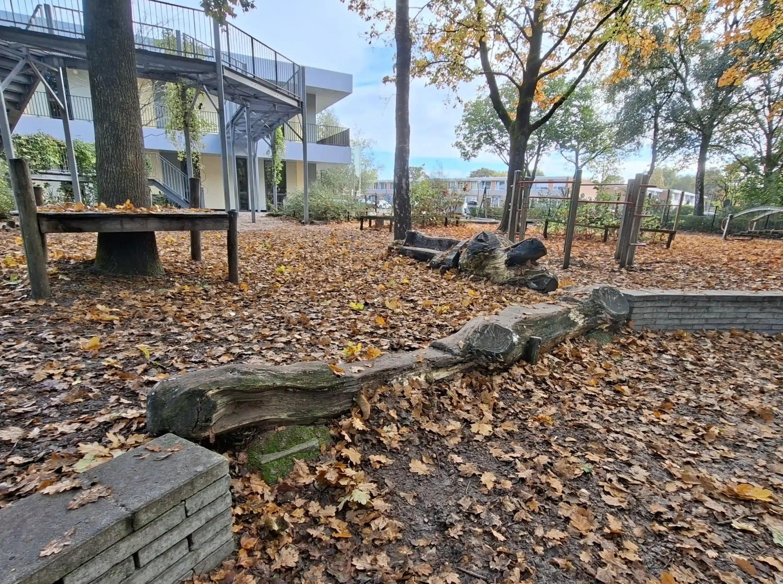 Voor de leerlingen is er van alles te beleven. In het avonturenbos kunnen ze klimmen, balanceren, kruipen en glijden. Er zijn evenwichtsbalken, trapjes, hoogteverschillen, een duikelrek, een grote zandbak en zelfs een draak van een boomstam – letterlijk! Een podium en veel zitplekjes maken het plein compleet: er is ruimte voor spel, rust én creativiteit.
