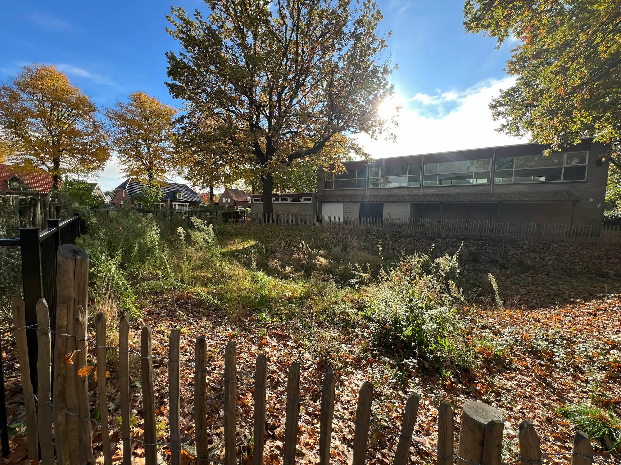 Ook aan de dieren is gedacht. Vleermuiskasten en een groot, fleurig insectenhotel bieden onderdak aan allerlei kleine bewoners, waardoor het plein gonst van leven. En alsof dat nog niet genoeg is, loopt het terrein naadloos over in de openbare ruimte, waar tussen de oude eikenbomen het regenwater op natuurlijke wijze wordt opgevangen.